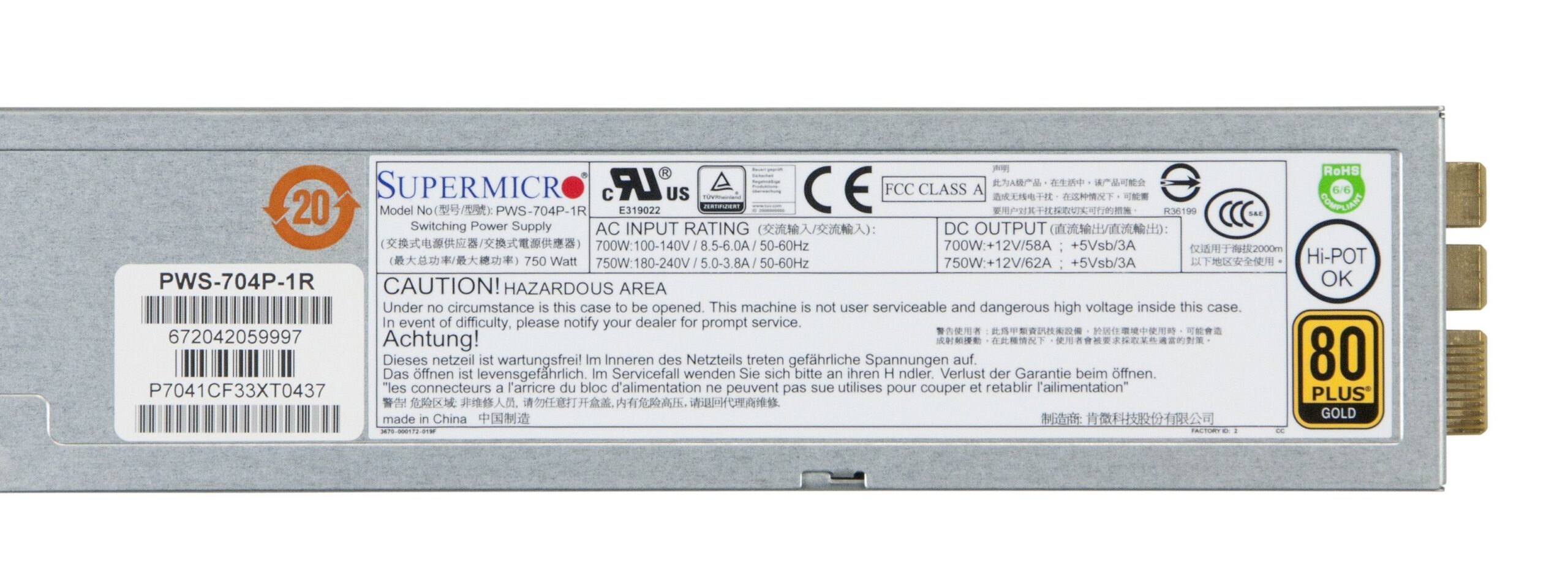 Supermicro 700W/750W 1U Redundant Power Supply (PWS-704P-1R)